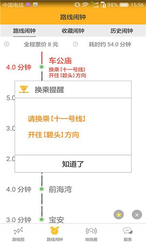 (4)保存并管理收藏鬧鐘線路。