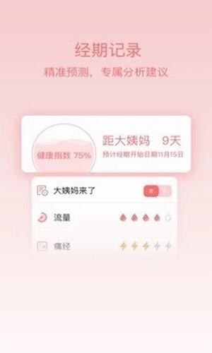姨媽呵護助手app精準預測,科學記錄每一次生理期,越用分析越準確??茖W備孕,提供月經(jīng)期保健、育兒、產(chǎn)后恢復、生活保健等各類專業(yè)全面的知識,幫你解決經(jīng)期、懷孕、備孕、育兒不同階段的困擾??茖W呵護女性成長每一天。