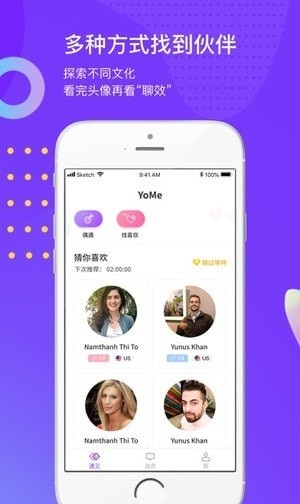 YoMe app可以根據(jù)你的需求包括母語,學(xué)習(xí)語言,地區(qū)分布,年齡,性別等篩選條件,為你自動匹配最合適的理想語伴。