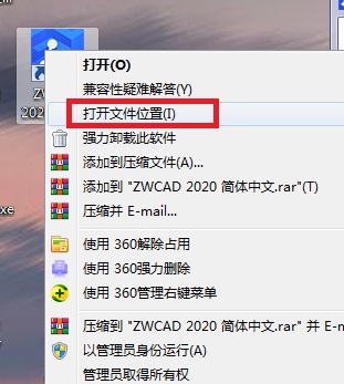 5、找到桌面的快捷方式點擊右鍵“打開文件位置”,或者也可以直接去“C:\Program Files\ZWSOFT\ZWCAD 2020”。