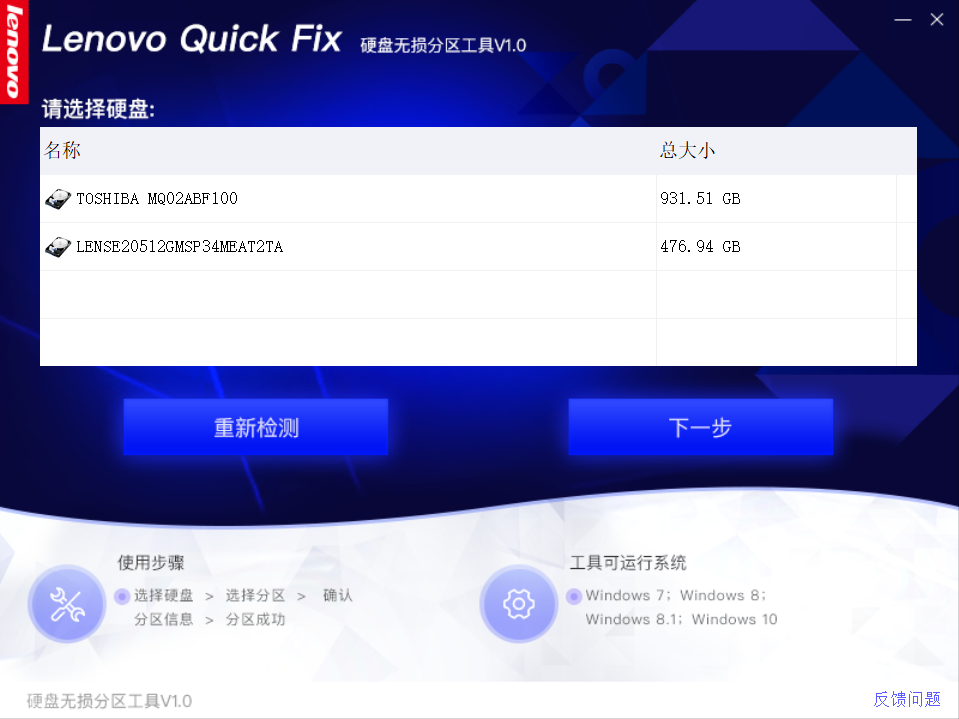 您可以選擇要分割的磁盤,點擊下一步,軟件提示正在獲取磁盤分區(qū),本例中選擇的是TOSHIBA 931.51GB的硬盤進行演示,如圖:
