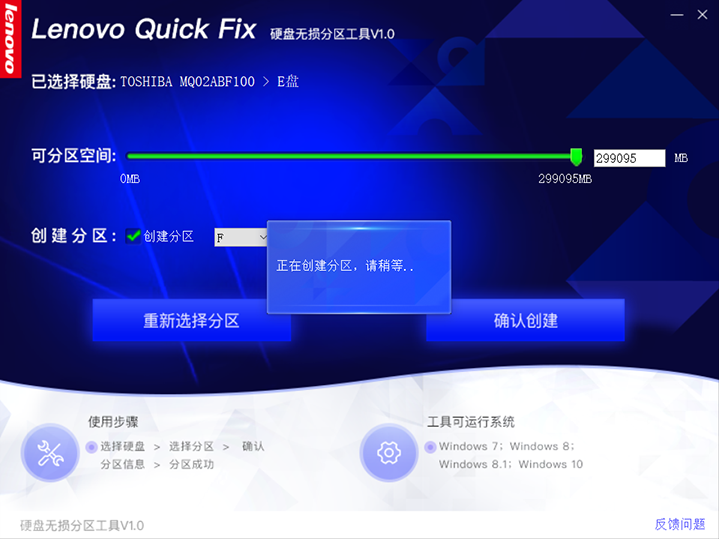 點擊確認后,軟件將開始創(chuàng)建分區(qū),請耐心等待,如圖: