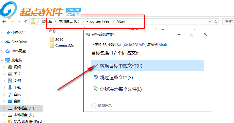9、解壓破解補(bǔ)丁,然后將其復(fù)制粘貼到C:\Program Files\Altair\2019中替換就可以了