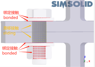 整個(gè)裝配體的接觸將全部自動(dòng)創(chuàng)建,紅色為bonded,黃色為sliding。