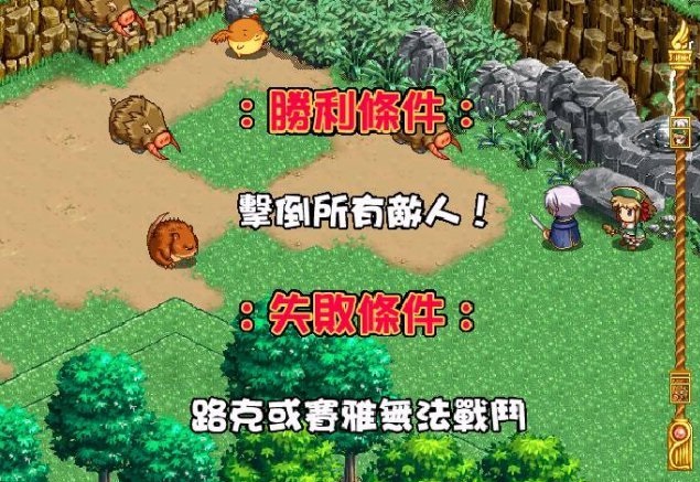 賽亞去泉水時(shí)遇到怪物路克出現(xiàn)把她救出敵人:山豬x3針鼠x1羽翼犬x1(用路克作肉盾賽亞邊走邊吸取元素輔助攻擊)戰(zhàn)斗完路克發(fā)現(xiàn)賽受傷并為她療理。
