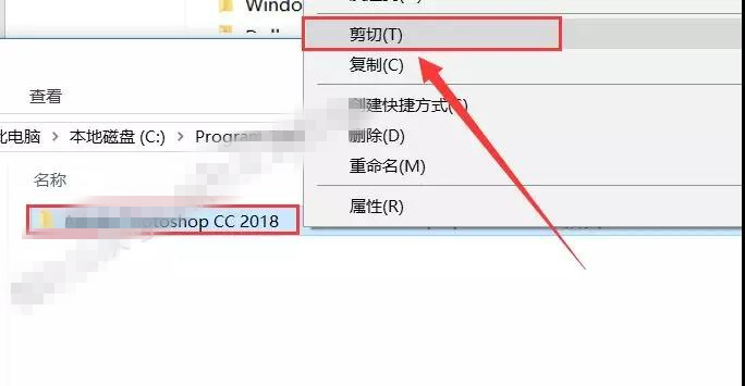 13.選中【Adobe Photoshop CC 2018】文件夾,鼠標(biāo)右擊選擇【剪切】。