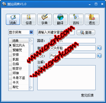 潮汕詞典是一款學(xué)習(xí)潮汕文化的制勝法寶,通過本軟件你可以講日常生活用語翻譯成潮汕方言,起其簡單好用,并且還有農(nóng)歷、俗語、百科等具有潮汕特征的文化可以查詢。