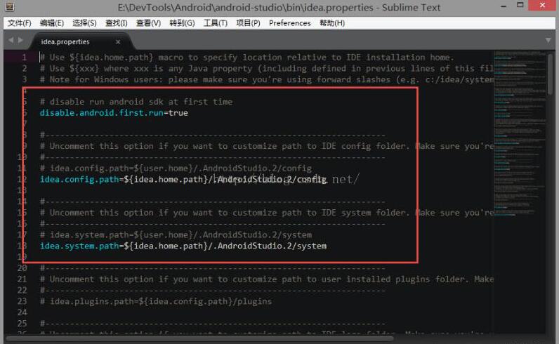 # ${idea.home.path}表示Android Studio程序的主目錄,注意目錄分隔符要用正斜杠“/”idea.config.path=${idea.home.path}/.AndroidStudio.2/config