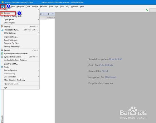 左上角選擇“File-open(文件-打開)”。