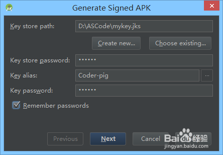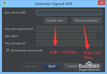 彈出窗口,如果沒有key,就創(chuàng)建一個,有的話就選擇存在的Key,如果你是第一次打包。都是沒有的