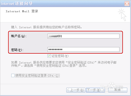 輸入您郵箱的帳號(hào)名及密碼(帳號(hào)只輸入@前面的部分),再點(diǎn)擊“下一步”,如下圖所示: