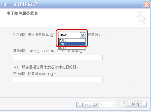 郵件接收服務(wù)器您可以選擇POP3或IMAP服務(wù)器,如下圖所示: