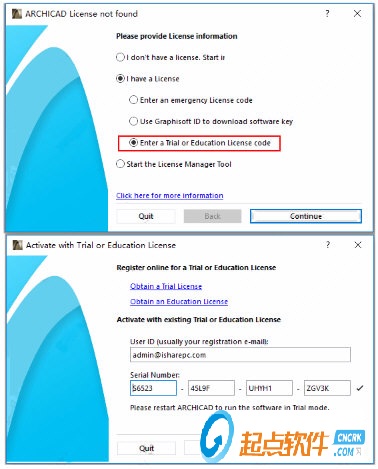 3、軟件打開時會彈出無法找到許可,再次輸入上面的郵箱和序列號即可;