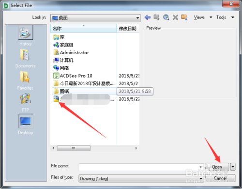 通過選擇路徑并打開原有DWG圖形文件,如圖所示。