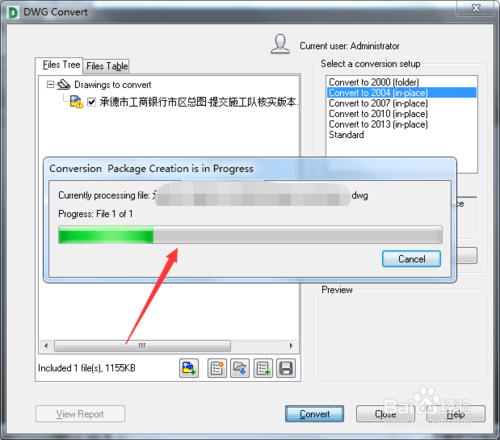 點(diǎn)擊DWG Convert按鈕即可開始DWG的版本轉(zhuǎn)換