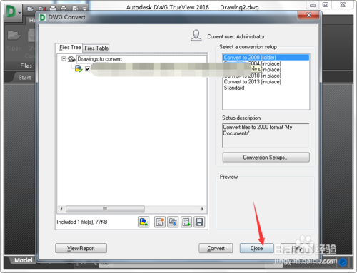 打開圖紙后,在右側(cè)選擇要轉(zhuǎn)換的版本并點(diǎn)擊Convert開始轉(zhuǎn)換,如圖所示。