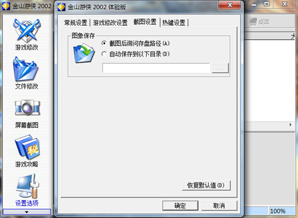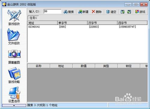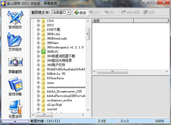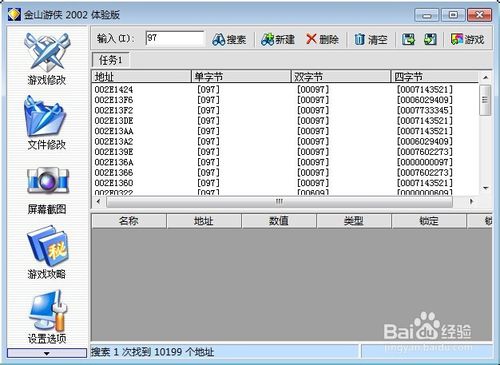 金山游俠(金山游俠修改器)提供金山游俠修改、屏幕截圖、變速齒輪、專用游戲修改器制作等基本功能,附帶游戲?qū)ず魴C(jī)。通過(guò)游俠修改游戲通常會(huì)感覺(jué)很過(guò)癮,當(dāng)你輸入要查詢的數(shù)值按下回車鍵后,在幾秒之內(nèi)就可以完成搜索過(guò)程。而且游俠查詢定位的準(zhǔn)確性也是很高的,當(dāng)?shù)诙屋斎霐?shù)值進(jìn)行查詢時(shí),基本上就可以排除其它的地址,找到準(zhǔn)確的地址以后,很快就可以使用戶完成對(duì)游戲的修改。該功能是游俠的主要特征之一。