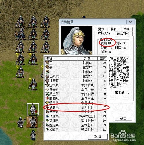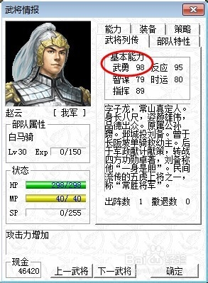 10、讀取存檔,回到你吃果前的狀態(tài)吧,看看吧,果子一個(gè)沒(méi)少,子龍的武力已經(jīng)變成100了,存檔一下就萬(wàn)事大吉了。