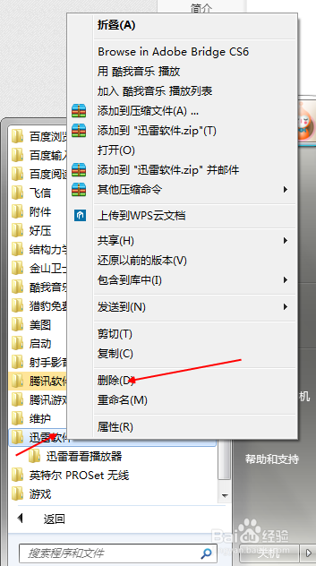 2、在“迅雷軟件”的目錄上右鍵,選擇“刪除”。