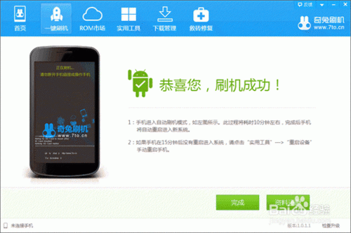 5、軟件提示刷機成功手機重啟,第一次開機比較慢,請耐心等待!