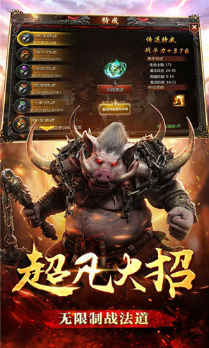 上線福利:登錄送VIP5,登錄送38888元寶,500萬金幣,首充滿V。首充福利:首充任意金額十倍返元寶(機會只有一次) 送滿vip(vip15) 并開通boss之家,刷boss無限制 更有無級別裝備,助你稱霸全服!