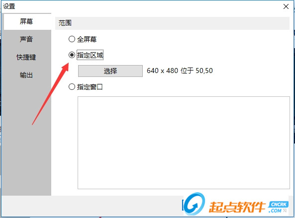 2 選擇“指定區(qū)域”,單擊“選擇”按鈕,可以手動(dòng)選擇要錄制的屏幕區(qū)域。
