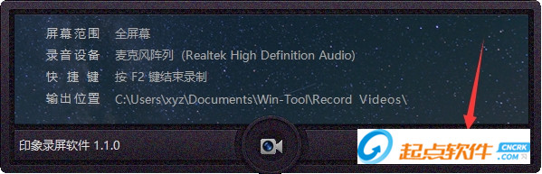 主界面印象錄屏軟件的主界面采用非常簡(jiǎn)潔的中控臺(tái)設(shè)計(jì),在主要部分實(shí)時(shí)顯示當(dāng)前用戶設(shè)置的錄制信息,包括屏幕范圍、錄音設(shè)備、快捷鍵和輸出信息等。