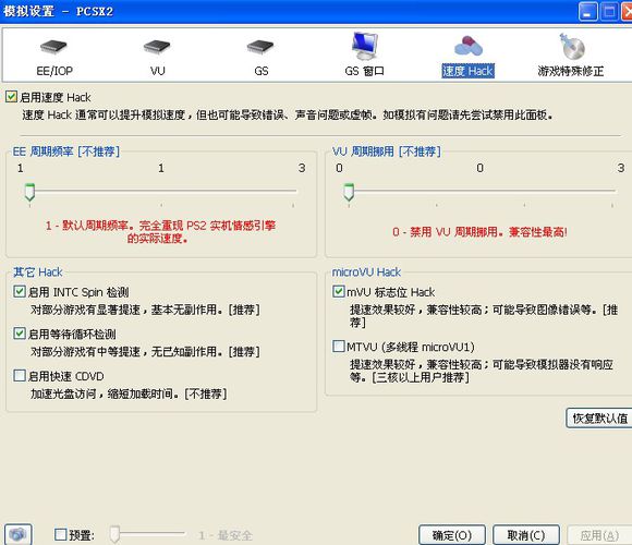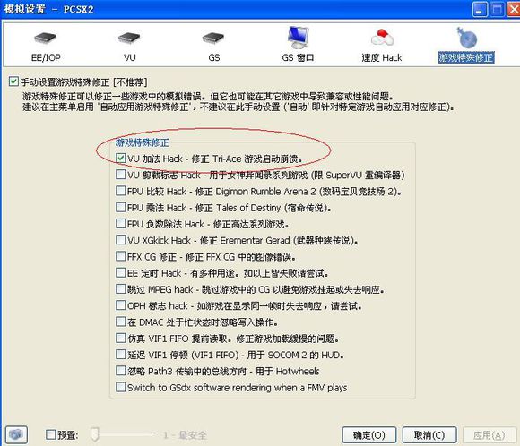 VU周期挪用 這個不用開了 零系列不支持VU開了也是假幀 并沒有加速作用 “如果你是低配玩家模擬戰(zhàn)神幀率過低可以開啟VU 戰(zhàn)神支持VU”(題外話)