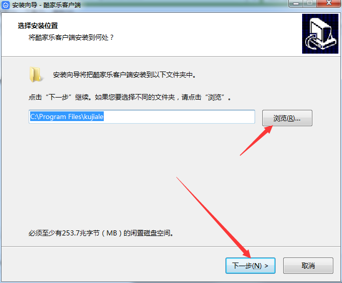 1、在本站下載酷家樂裝修軟件并解壓縮后,雙擊“.exe”程序,開始安裝;在出現(xiàn)的下圖界面中,選擇安裝位置,軟件默認(rèn)安裝在C盤,C盤空間充足的朋友們默認(rèn)位置即可,反之,則需要點擊右側(cè)的“瀏覽”按鈕,選擇其它盤符進(jìn)行安裝,如:D盤;之后點擊“下一步”繼續(xù)