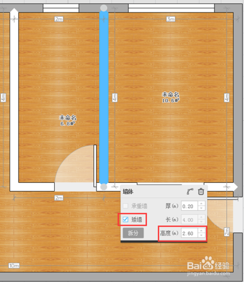 利用現(xiàn)在的“矮墻”系統(tǒng),把需要修改的內(nèi)墻再設(shè)定實際高度。