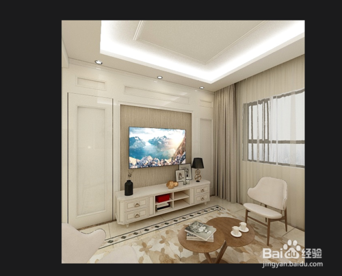 完成吊頂后,用渲染工具渲染一下,那么吊頂?shù)男Ч屯瓿闪?br />