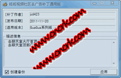 呱呱視頻社區(qū)去廣告補(bǔ)丁通用版是一款通用的呱呱視頻社區(qū)去廣告軟件。功能:去聊天室大廳首頁 去聊天室頂部廣告