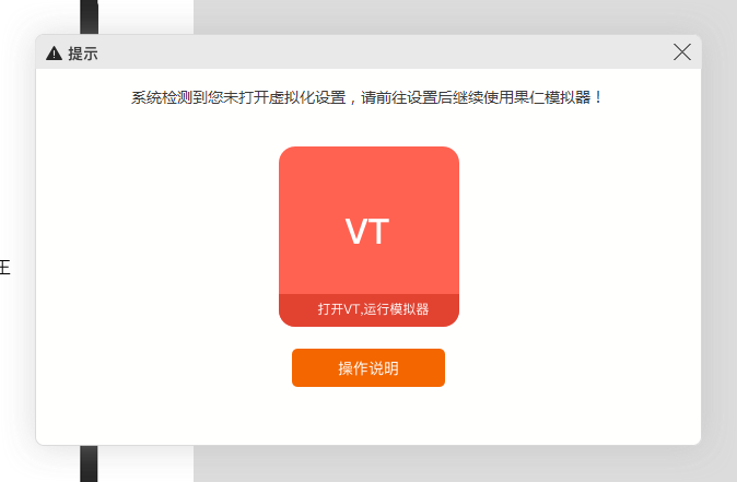 這是由于VT未開啟導(dǎo)致,需要點擊操作說明,參考教程開啟VT才能使用