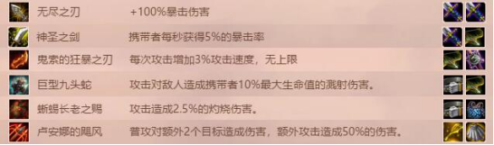 攻擊類:無盡之刃、神圣之劍 、鬼索狂暴之刃、巨型九頭蛇、蜥蜴長老之賜、盧安娜的颶風(fēng)