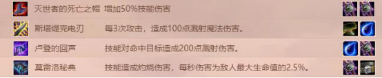 法術(shù)類:滅世者的死亡之帽、斯塔提克電刃、盧登的回聲、莫雷洛秘典