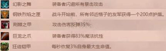 防御類:幻影之舞、鋼鐵烈陽之匣、荊棘之甲、巨龍之爪、狂徒鎧甲
