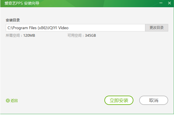 2、用戶可以選擇直接點擊立即安裝選項,然后軟件會默認安裝到系統(tǒng)C盤中,或者用戶點擊界面右下角的自定義安裝,然后在彈出的界面中點擊更改目錄,選擇合適的安裝位置后,用戶再點擊下方的立即安裝選項就可以開始安裝了。(小編建議用戶選擇自定義安裝,將愛奇藝軟件安裝到系統(tǒng)C盤之外的其他盤中。)