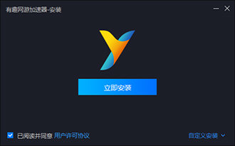 1、首先從本頁面或者官方下載有趣加速器最新版本,勾選同意用戶協(xié)議,并點(diǎn)擊立即安裝