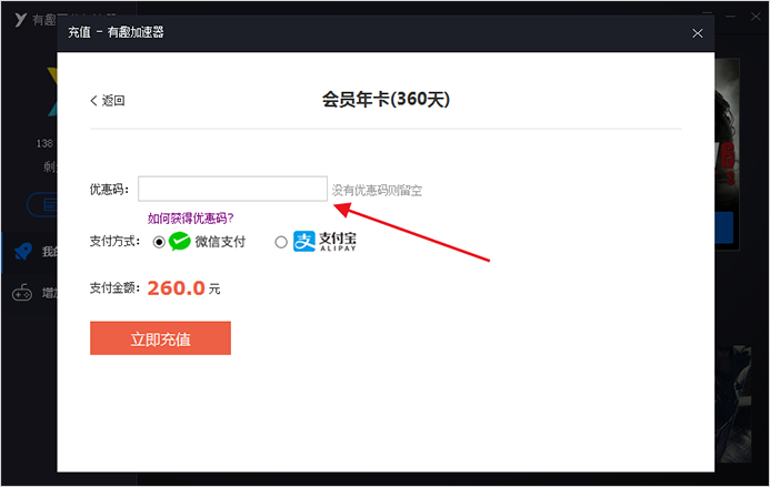 二、有趣加速器怎么使用優(yōu)惠碼?有趣網(wǎng)游加速器優(yōu)惠碼使用教程