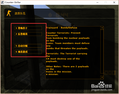 等待載入游戲,點(diǎn)擊確定,選擇隊(duì)伍,可以選反恐精英或者恐怖份子,也設(shè)為自動(dòng)分配,再選擇自己的一個(gè)角色類(lèi)型