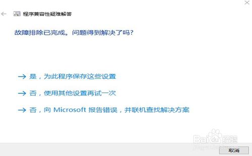 測(cè)試后如果程序能正常運(yùn)行,在隨后的選項(xiàng)框選擇是,為此程序保存這些設(shè)置。