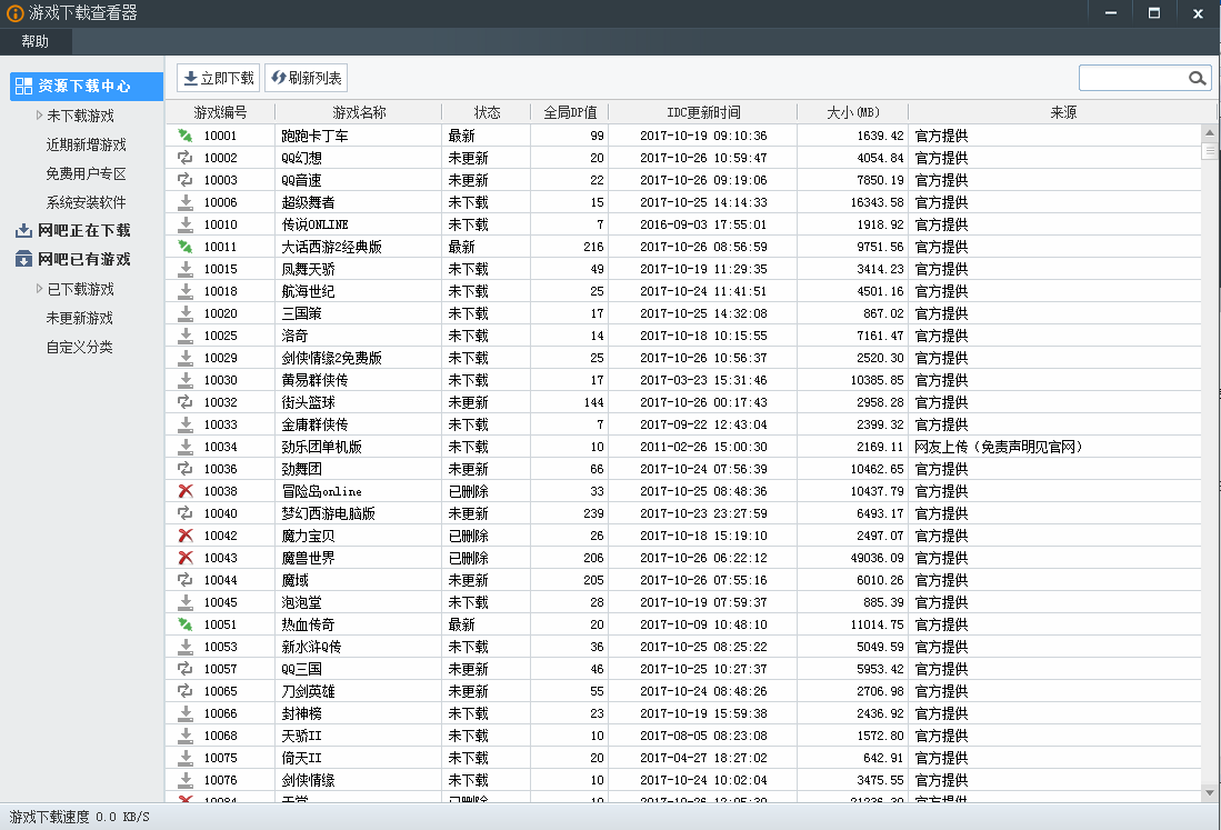 4.點(diǎn)擊確定后,可以進(jìn)入下載查看器,對(duì)網(wǎng)吧的游戲進(jìn)行查看、下載、更新和修復(fù)。