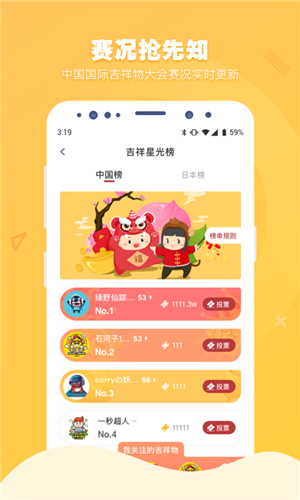 吉祥物大會官方指定投票,賽況搶先知,快來助力你pick的吉祥物成為明日之星吧。