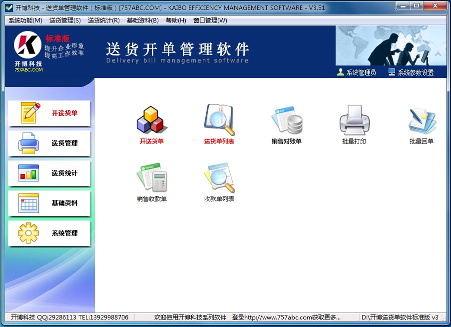 開(kāi)博送貨單管理軟件標(biāo)準(zhǔn)版是同類軟件中性價(jià)比最高的軟件。真真正正的讓您從此告別手工抄寫(xiě)送貨單和使用EXCEL做月結(jié)的煩惱,打印出整齊漂亮的送貨單。簡(jiǎn)單高效管理,從開(kāi)博開(kāi)始…