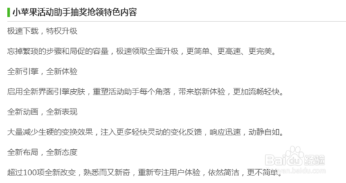 1、對(duì)比其他活動(dòng)助手,我們小蘋(píng)果更專(zhuān)注用戶(hù)使用,對(duì)廣告說(shuō)不,拒絕任何影響體驗(yàn)的廣告2、全面支持最新CF活動(dòng),遠(yuǎn)程更新,無(wú)需更新軟件