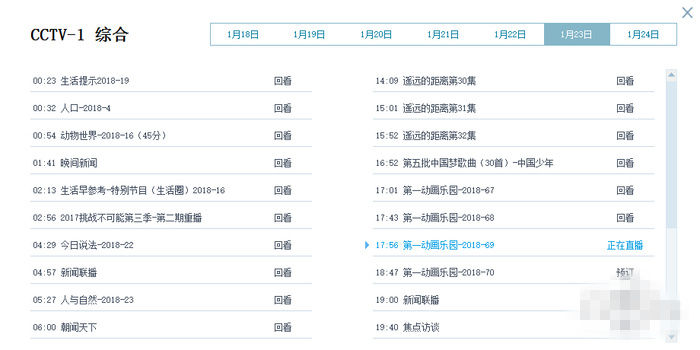 2、按照節(jié)目的播出時(shí)間尋找節(jié)目即可觀看。