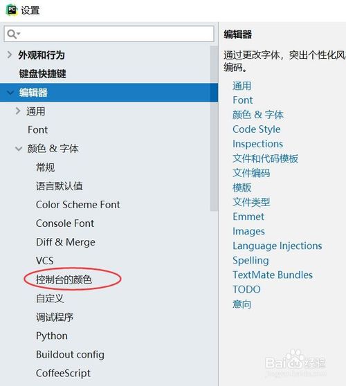 然后我們點擊顏色和字體這個選項,在下方找到控制臺的顏色這個選項。