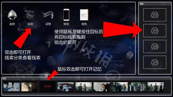 2.右側(cè)的組合欄是用來推進(jìn)劇情的,使用鼠標(biāo)左鍵按住目標(biāo)線索即可將其拖動到組合欄內(nèi),需要刪掉組合內(nèi)的線索只需要使用鼠標(biāo)左鍵按住目標(biāo)線索將其拖出組合欄就行了,如果組合成功則會自動進(jìn)入劇情產(chǎn)生新的線索。