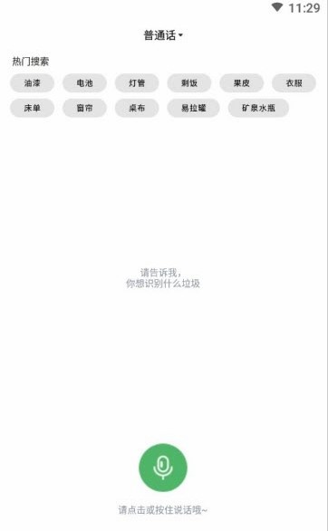 1:AI智能語音識別,(支持普通話,英語,方言等語言)快速搜索出垃圾類型。