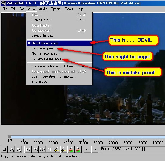 下完電影常有不如意:有的比例不對,拉的太長或是壓得太扁;有的有黑邊,尤其是從VCD轉(zhuǎn)的;還有可能太大,800*600的分辨率太奢侈,刻光盤刻不 下,上傳作種時間明顯增加...這時virtualdub就可以派上用場了。我主要從幾個最常用的功能入手,介紹版本1.6.11的使用。當然軟件本身的 功能遠不止此,大家自己開發(fā)。